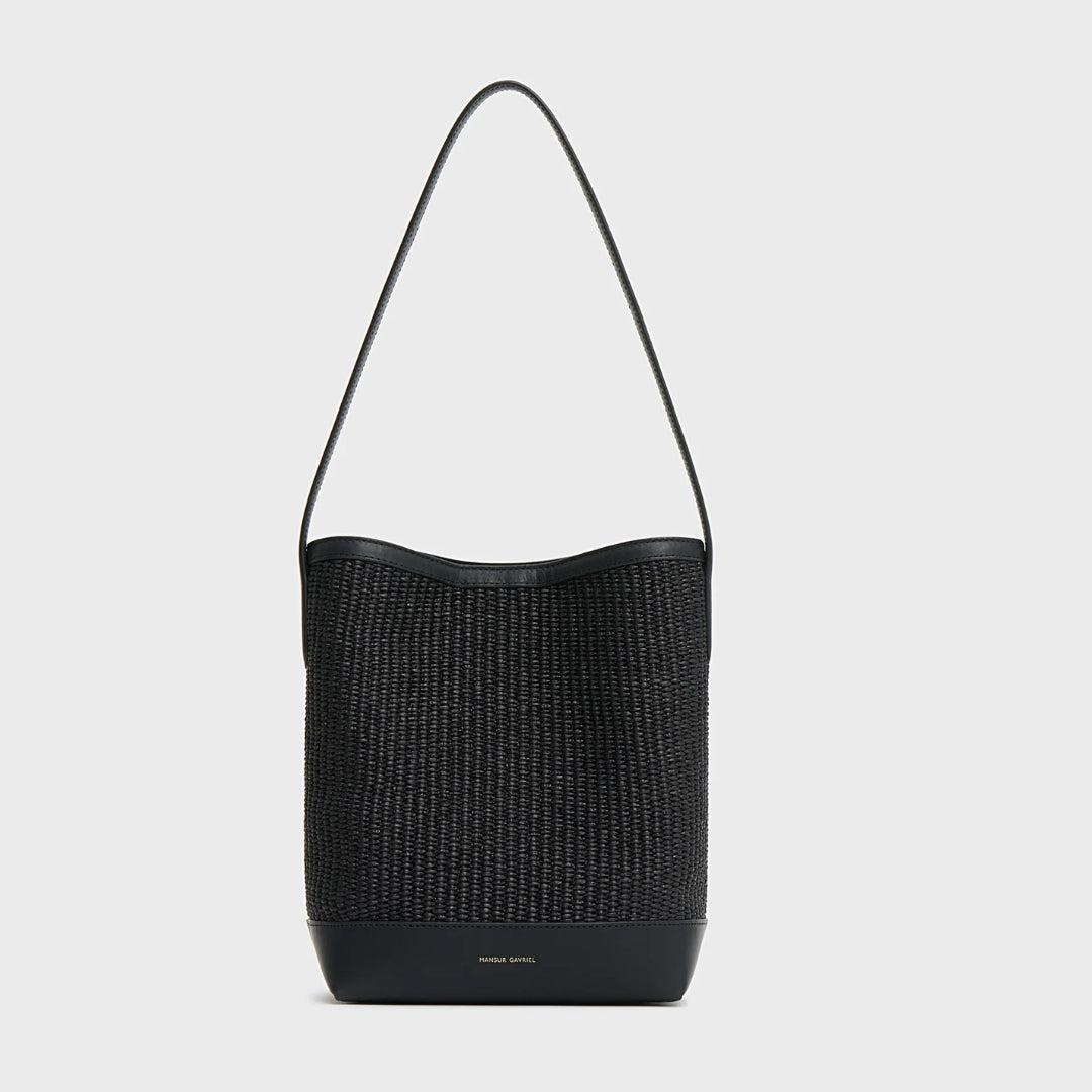 Crafted from soft Italian raffia with elongated handles, an interior pocket, and a secure magnetic closure, the Everyday Cabas is spacious enough to fit a 14" laptop, notebook or tablet.