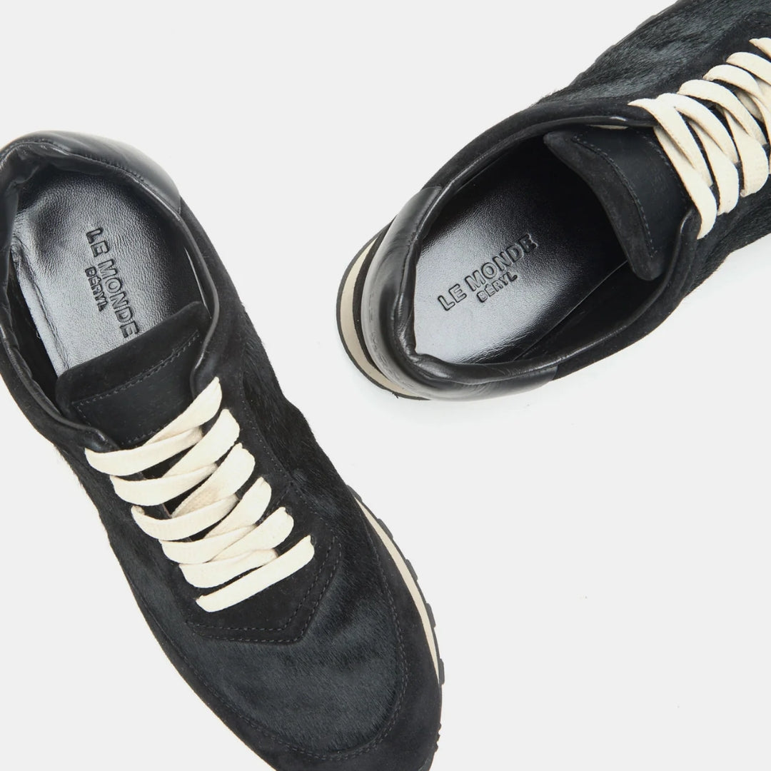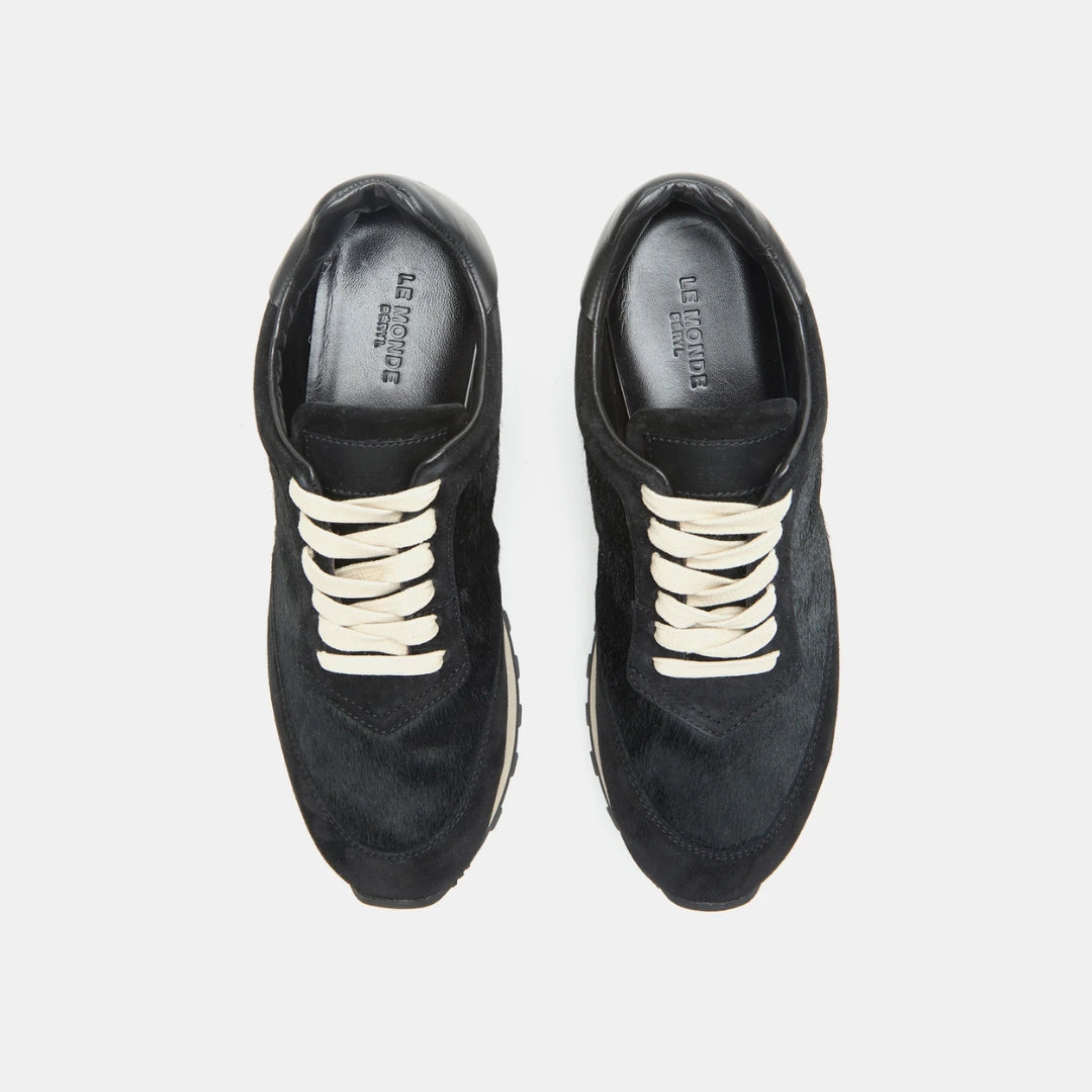 Slim Runner sneaker, handcrafted in black calf hair with tonal suede and leather details. Cushioned insole and lining in goat skin, tread in smooth rubber. Lace-up fastening. Made in Italy.